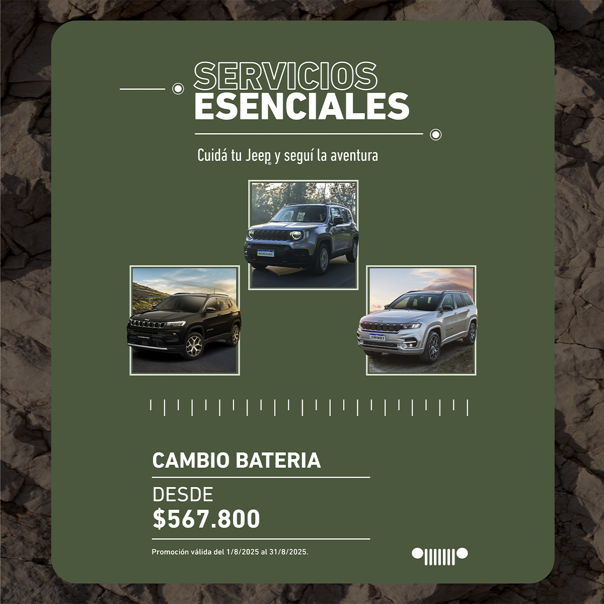 Disfrutá de planes de servicio personalizados, ofrecidos en toda Argentina, con precio fijo y mayor valor de reventa para tu Jeep.